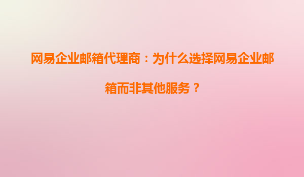 2025-08-26网易企业邮箱代理商:为什么选择网易企业邮箱而非其他服务? 在当今数字化时代,企业邮箱已成为企业日常运营中不可或缺的一部分。它不仅承载着企业内部与外部的沟通,还关系到企业的信息安全与品牌形象。面对市...