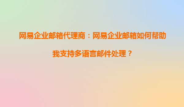 2025-08-24网易企业邮箱代理商:网易企业邮箱如何帮助我支持多语言邮件处理? 在全球化的商业环境中,企业需要与来自不同国家和地区的客户、合作伙伴进行沟通。多语言邮件处理能力成为企业邮箱不可或缺的功能之...