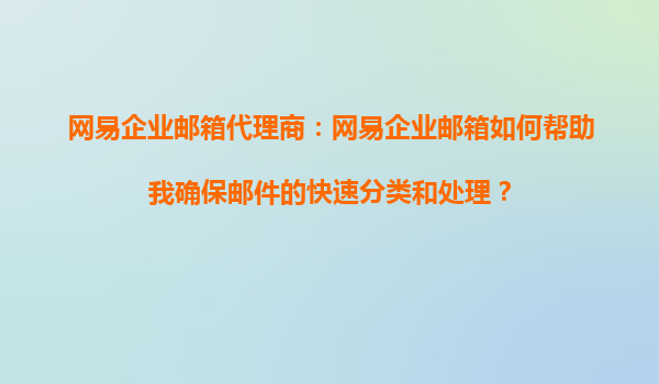 2025-08-24网易企业邮箱代理商:网易企业邮箱如何帮助我确保邮件的快速分类和处理? 在现代企业中,高效的邮件管理是提升工作效率的关键。网易企业邮箱作为国内领先的企业邮箱服务提供商,凭借其强大的功能和稳定的性能,...