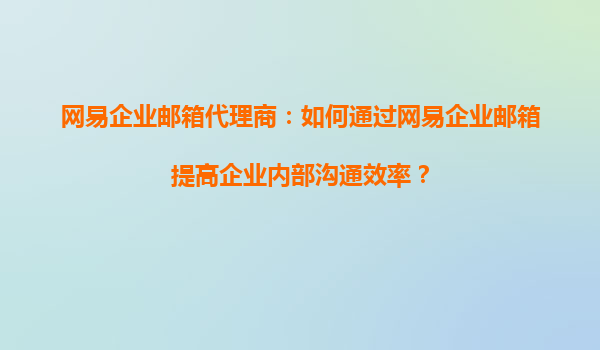 网易企业邮箱代理商:如何通过网易企业邮箱提高企业内部沟通效率? 引言 在当今快节奏的商业环境中,高效的内部沟通是企业成功的关键因素之一。作为网易企业邮箱的代理商,我们深知选择一款功能强大、安全...