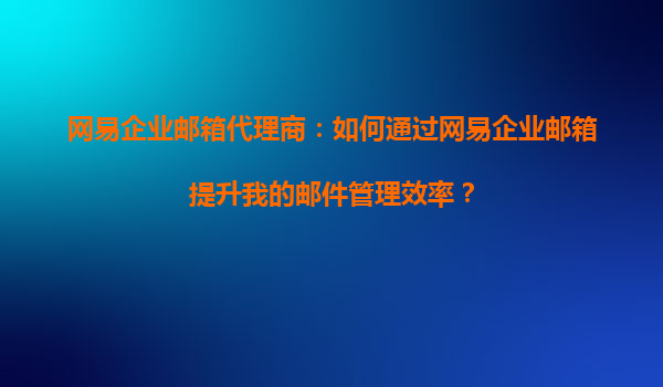 2025-08-21网易企业邮箱代理商:如何通过网易企业邮箱提升我的邮件管理效率? 前言 在当今快节奏的商业环境中,高效的邮件管理是企业运营的核心需求之一。作为企业的基础通信工具,邮箱系统的稳定性和功能性...