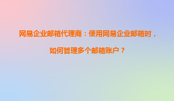 2025-08-22网易企业邮箱代理商:高效管理多个邮箱账户的实用指南 一、多账户管理的核心需求与挑战 在企业运营中,部门分工、岗位职能的差异化往往需要配置多个专属邮箱账户。传统管理方式需反复登录切换,效率低下且易遗漏重...