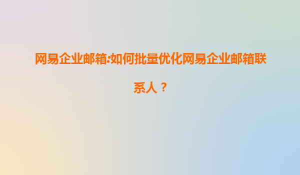 2025-08-15网易企业邮箱:联系人批量优化的高效解决方案 在日常工作中,企业邮箱联系人的管理往往成为影响效率的关键因素。网易企业邮箱凭借其强大的功能与人性化设计,为用户提供了完善的批量优化联系人方案,帮助企业实现...