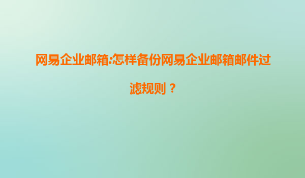 2025-08-15如何备份网易企业邮箱邮件过滤规则 作为企业邮箱服务的佼佼者,网易企业邮箱提供了强大的邮件管理功能,其中邮件过滤规则对于提升工作效率尤为重要。定期备份过滤规则可避免意外重置导致的配置丢失,下面将详细介...