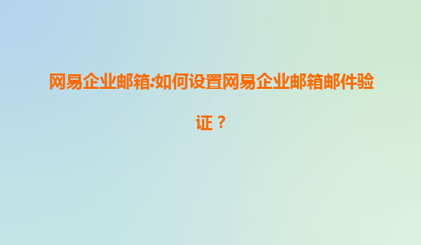 2025-08-15网易企业邮箱邮件验证设置详解 网易企业邮箱作为国内领先的企业级电子邮件服务,为企业用户提供了安全稳定的邮件通信服务。其中邮件验证功能是企业邮箱安全防护的重要组成部分。下面我们将详细介绍如何在网易企业邮...