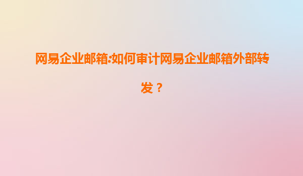 2025-08-15网易企业邮箱:如何审计外部转发并发挥代理商优势 一、网易企业邮箱外部转发审计的重要性 在企业的日常运营中,邮件是信息传递的重要载体。然而,邮件外部转发...