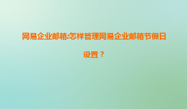 2025-08-15网易企业邮箱节假日设置管理指南 网易企业邮箱作为国内领先的企业级邮箱服务商,凭借其稳定性、安全性和丰富的管理功能,成为众多企业的首选。通过合理配置节假日设置,企业可优化内部沟通效率,提升...