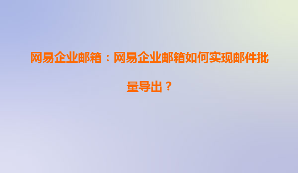 2025-08-04网易企业邮箱邮件批量导出功能详解 作为国内领先的企业邮箱服务提供商,网易企业邮箱凭借其稳定、安全、高效的特点,赢得了众多企业的青睐。其中,邮件批量导出功能更是为企业用户提供了极大的便利,帮助用户高效管...