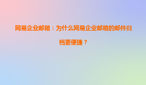 2025-08-05网易企业邮箱邮件归档功能的高效便捷性 一、智能化归档技术提升管理效率 网易企业邮箱采用先进的智能化归档技术,通过预设规则自动分类存储邮件,支持按时间、发件人、主题等多维度快速归档。管理员无需手...