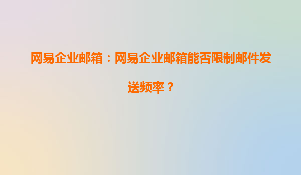 2025-08-05网易企业邮箱:网易企业邮箱能否限制邮件发送频率? 一、网易企业邮箱的核心优势 网易企业邮箱作为国内领先的企业级邮件服务提供商,凭借其稳定、安全、高效的特点,赢得了众多企业...