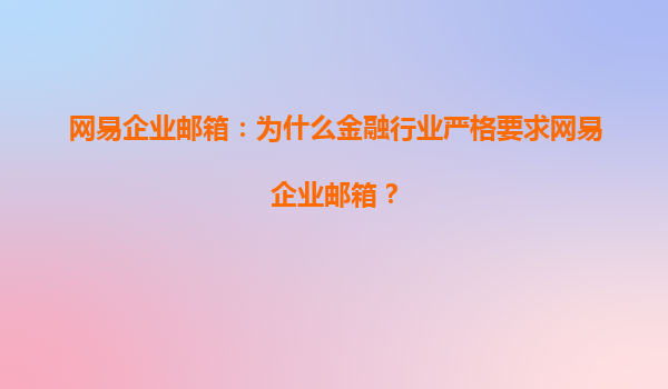 2025-08-04网易企业邮箱:为什么金融行业严格要求网易企业邮箱? 一、金融行业的特殊性对邮箱系统的严苛要求 金融行业作为国民经济的重要支柱,其业务涉及大量敏感数据和资金往来,对信息安全、合规性及稳定性有着近...