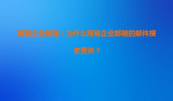 2025-08-03网易企业邮箱:为什么网易企业邮箱的邮件搜索更快? 一、高效搜索的核心:技术架构与算法优化 网易企业邮箱的邮件搜索速度远超同类产品,其核心在于底层技术架构的优化和智能算法的应用。首先,网易采...