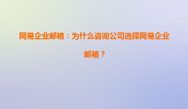 2025-08-03咨询公司为何青睐网易企业邮箱? 专业形象与品牌提升 咨询公司作为知识密集型行业,专业形象至关重要。网易企业邮箱支持定制域名(如@company.com),统一后缀的邮箱地址能强化企业品牌标识,在与客户沟通...