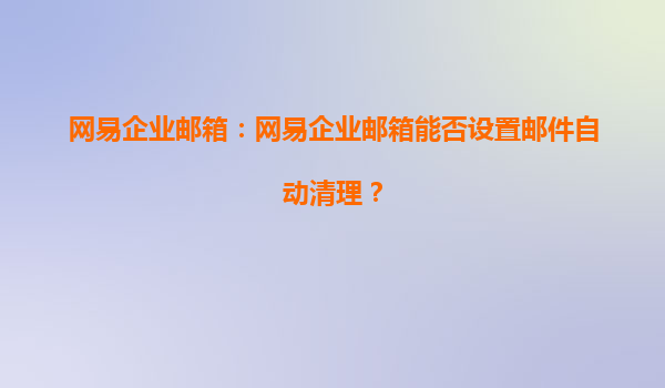 2025-08-03网易企业邮箱:网易企业邮箱能否设置邮件自动清理? 在现代企业管理中,高效的邮件系统是提升工作效率的重要工具之一。网易企业邮箱作为国内领先的企业邮箱服务提供商,凭借其稳定、安全、便捷的特点...
