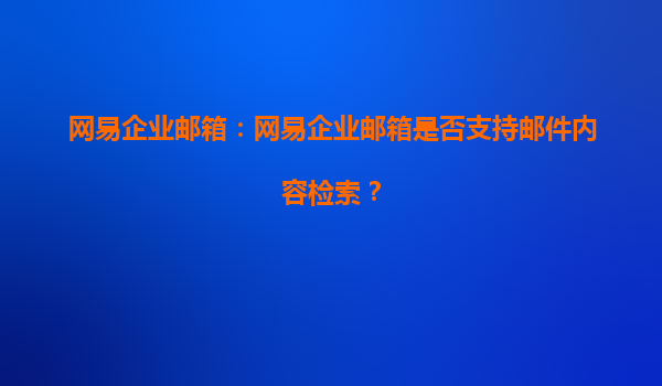 2025-08-03网易企业邮箱:邮件内容检索功能详解与优势分析 一、网易企业邮箱是否支持邮件内容检索? 网易企业邮箱作为国内领先的企业级邮件服务提供商,全面支持邮件内容检索功能。用户可以通过关键词、发件人、...