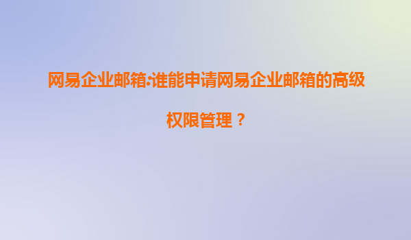 2025-07-27网易企业邮箱:谁能申请网易企业邮箱的高级权限管理? 一、网易企业邮箱的优势 网易企业邮箱作为国内领先的企业级邮箱服务提供商,凭借其强大的功能和稳定的性能,赢得了众多企业和机构的青睐。以...