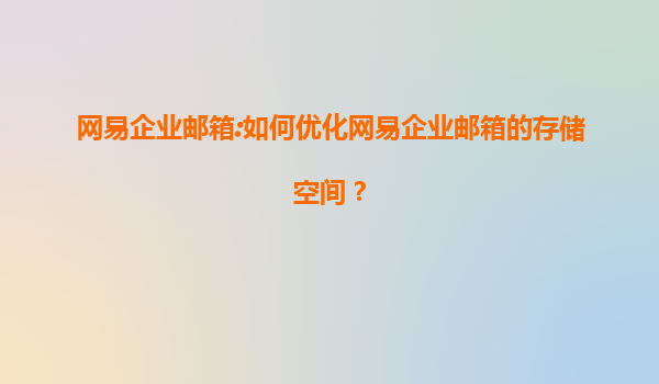 2025-07-28网易企业邮箱:如何优化存储空间的实用指南 一、网易企业邮箱存储空间管理的重要性 随着企业信息化程度的提高,电子邮件已成为日常沟通和文件传输的重要工具。网易企业邮箱作为国内领先的企业邮箱服务...