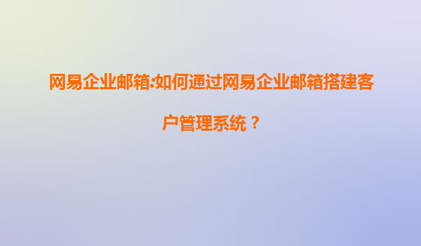 2025-07-27网易企业邮箱:如何通过网易企业邮箱搭建客户管理系统? 在当今数字化时代,客户关系管理(CRM)已成为企业提升效率、优化客户体验的核心工具之一。网易企业邮箱不仅是一款高效的企业通信工具,还能通过与网易生...