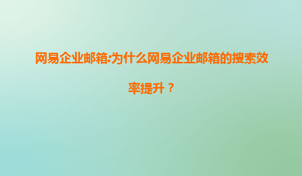 2025-07-27网易企业邮箱:为什么网易企业邮箱的搜索效率能大幅提升? 在当今快节奏的商业环境中,企业邮箱作为日常沟通的重要工具,其搜索功能的效率直接影响着工作效能。网易企业邮箱凭借技术优势和创新设计,不断...