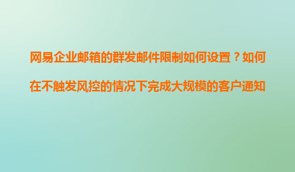 2025-11-08网易企业邮箱的群发邮件限制设置及大规模客户通知策略 一、网易企业邮箱群发邮件的限制规则解析 网易企业邮箱为保障邮件系统的稳定性和减少垃圾邮件风险,对群发邮件设有明确限制: 单次发送上限:...