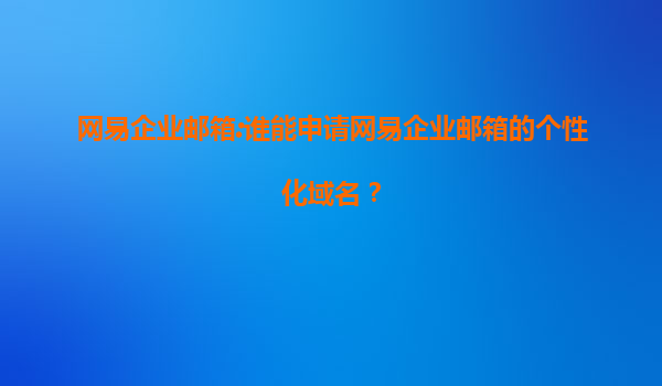 网易企业邮箱个性化域名申请指南 在当今数字化时代,企业邮箱不仅是内部沟通的重要工具,更是企业形象和专业性的体现。网易企业邮箱作为国内领先的企业邮箱服务商,凭借其稳定、安全、高效的特性深受企业用户青睐。...