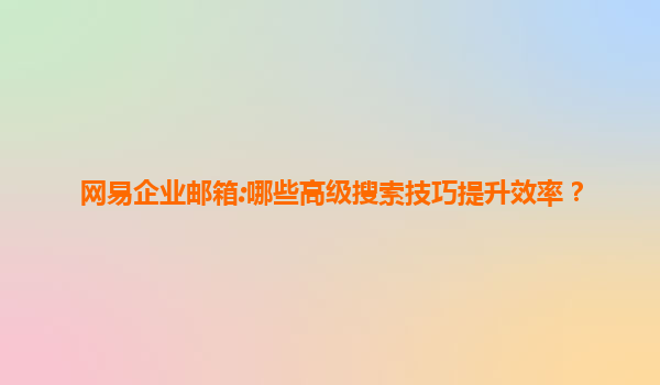 2025-07-16网易企业邮箱:哪些高级搜索技巧提升效率? 一、网易企业邮箱的核心优势 网易企业邮箱作为国内领先的企业级邮件服务,凭借以下优势成为众多企业的首选: 超大...