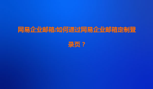 2025-07-16网易企业邮箱:如何通过网易企业邮箱定制登录页? 一、网易企业邮箱的定制化登录页功能 网易企业邮箱作为国内领先的企业邮箱服务提供商,提供了强大的定制化功能,其中登录页定制是企业品牌展示的重要窗口。通...