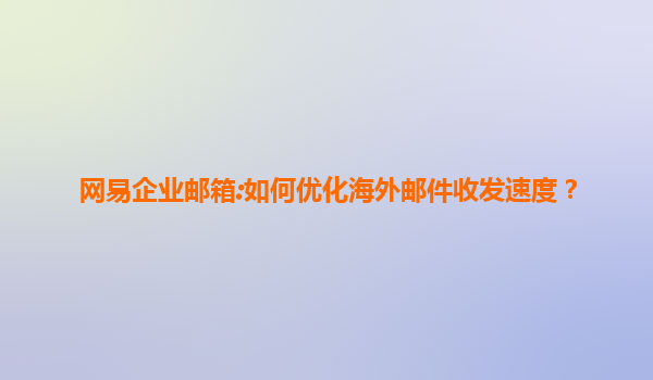 2025-07-13网易企业邮箱:如何优化海外邮件收发速度? 在全球化的商业环境中,高效的海外邮件沟通已成为企业国际化的重要一环。然而,由于网络延迟、服务器距离等问题,许多企业在收发海外邮件时经常遇到延迟或...