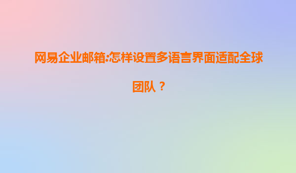 2025-07-13网易企业邮箱:如何设置多语言界面,高效适配全球团队协作? 一、全球化团队的多语言需求背景 随着企业全球化进程加速,跨国团队协作成为常态。邮件作为核心沟...
