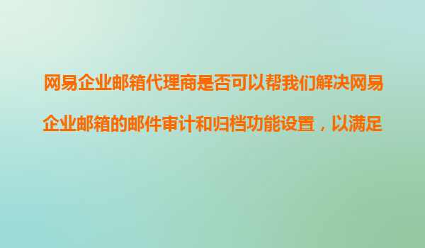 2025-11-07网易企业邮箱代理商是否可以帮我们解决网易企业邮箱的邮件审计和归档功能设置,以满足合规性要求? 一、网易企业邮箱的核心优势 网易企业邮箱作为国内领先的企...