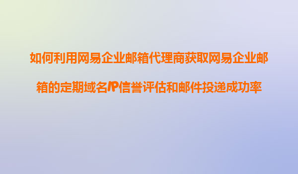2025-11-07如何利用网易企业邮箱代理商获取网易企业邮箱的定期域名IP信誉评估和邮件投递成功率报告分析服务? 在现代企业运营中,高效的邮件通信系统是提升业务效率的关键工具。网易企业邮箱凭借其稳定的系统架构和强...