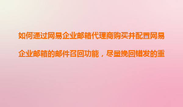 2025-11-07如何通过网易企业邮箱代理商购买并配置邮件召回功能,挽回错发邮件 一、网易企业邮箱的核心优势 作为国内领先的企业级邮箱服务商,网易企业邮箱凭借以下优势成为众多企...