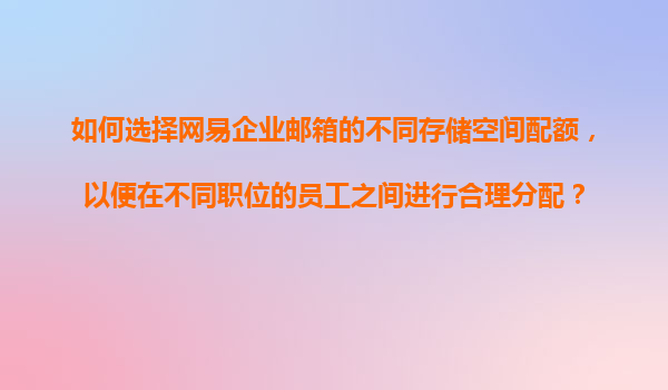 如何选择网易企业邮箱的不同存储空间配额,以便在不同职位的员工之间进行合理分配? 一、网易企业邮箱的核心优势 网易企业邮箱作为国内领先的企业通信解决方案,具备以下核心优势,为企业存储空间管理...
