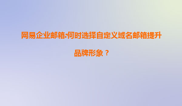 2025-07-11网易企业邮箱:何时选择自定义域名邮箱提升品牌形象? 一、自定义域名邮箱的价值 在数字化商业时代,企业邮箱不仅是沟通工具,更是品牌形象的延伸。使用自定义域名邮箱(如name@yourcompa...