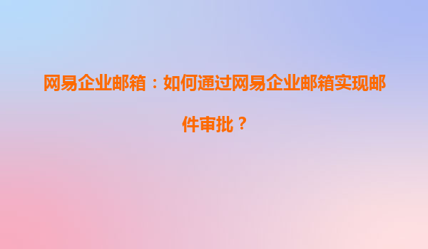 网易企业邮箱邮件审批功能简介 网易企业邮箱作为国内领先的企业级邮件服务提供商,其邮件审批功能为企业内部邮件流转提供了高效、安全的管控机制。通过该功能,企业可以设定特定邮件需经上级或指定审批人审核后才能...