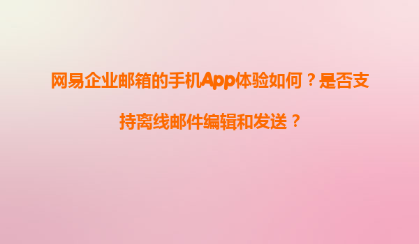 2025-11-05网易企业邮箱App体验深度解析:移动办公效率之选 一、网易企业邮箱App核心体验亮点 网易企业邮箱手机App延续了PC端专业稳定的特性,针对移动场景进行了深度优化: 1.极简交互设计:采用类邮箱客户端的三栏式...