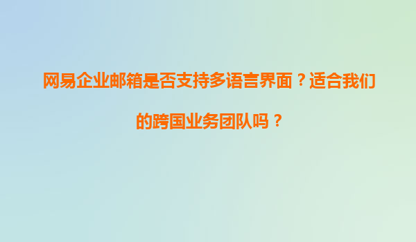 2025-11-05网易企业邮箱是否支持多语言界面?适合跨国业务团队吗? 引言 在全球化背景下,企业跨国业务日益频繁,高效的沟通工具成为团队协作的核心需求。作为国内领先的...