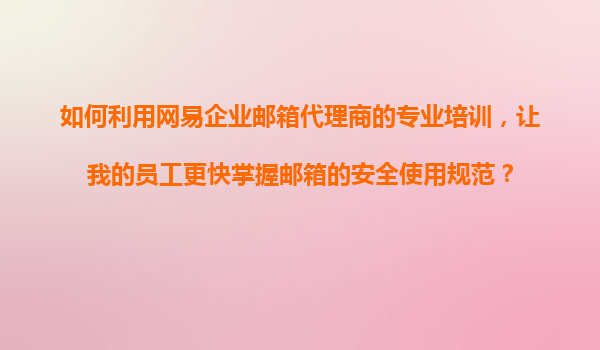 2025-11-05为什么要通过专业培训提升员工邮箱安全使用能力? 在数字化办公时代,企业邮箱不仅是沟通工具,更是数据安全的第一道防线。网易企业邮箱作为国内领先的商务邮箱服务商,提供包括反垃圾邮件、邮件加密、登录保护等...