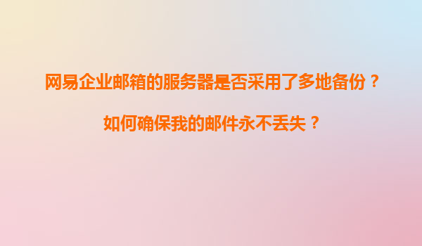 2025-11-05网易企业邮箱的多地备份策略保障邮件安全 作为国内领先的企业邮箱服务提供商,网易企业邮箱通过采取多地数据备份策略,确保用户邮件数据的安全性和可靠性。网易在全球多个数据中心部署服务器集群,所有邮件数据均采...