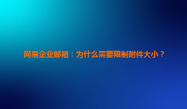 2025-07-01为什么需要限制附件大小? 在日常工作中,企业邮箱作为沟通的重要工具,附件传输是不可或缺的功能。然而,附件大小的限制并非随意设置,而是基于多方面的考量。限制附件大小可以提升邮箱系统的稳定性,避免因超大附...