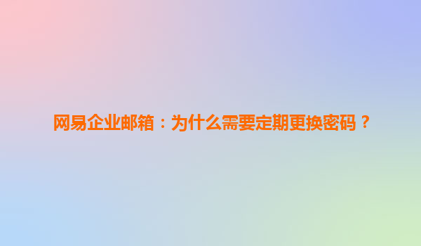 2025-06-28网易企业邮箱:为什么需要定期更换密码? 一、密码安全的重要性 在数字化办公时代,企业邮箱承载着核心业务数据和敏感信息。据2023年《中国企业邮箱安全报告》显示,83%的企业数据泄露事...