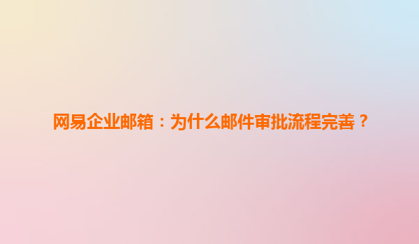 网易企业邮箱:为什么邮件审批流程完善? 一、企业邮件审批的核心价值 在数字化办公场景中,邮件审批流程是企业风控的核心防线。网易企业邮箱的审批功能通过三重价值构建完善体系:风险...