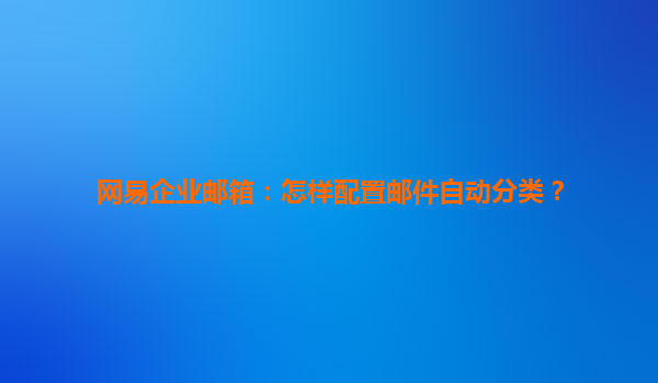 2025-06-28网易企业邮箱:高效邮件自动分类配置指南 一、为什么需要邮件自动分类? 现代企业平均每人每天收到50+封邮件,手动分类耗时耗力。网易企业邮箱的自动分类功能通过智能规则引擎,实现: 精准分流:按客...