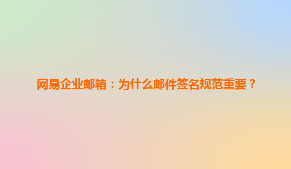 网易企业邮箱:为什么邮件签名规范对企业至关重要? 一、邮件签名——被忽视的企业形象名片 在数字化沟通时代,邮件仍是企业商务往来的核心渠道。数据显示,职场人平均每天处理25+封工作...