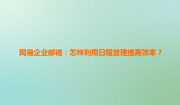 2025-06-28网易企业邮箱:巧用日程管理,提升团队效率新引擎 一、日程管理的核心价值 在快节奏的商业环境中,时间管理能力直接决定团队生产力。网易企业邮箱的日程管理功能,将邮件沟通与时间规划...
