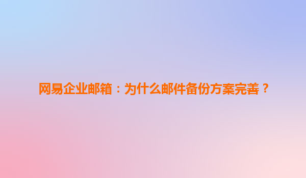 网易企业邮箱:为什么邮件备份方案完善? 在数字化办公时代,企业邮件承载着大量商业机密与历史数据。一次误删除、系统故障或安全事件,都可能造成无法挽回的损失。网易企业邮箱凭借其行业领先...
