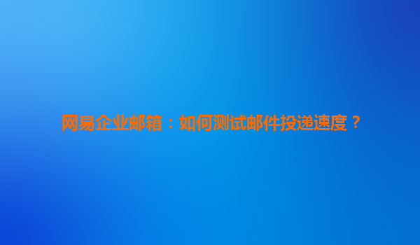 2025-06-28网易企业邮箱:如何测试邮件投递速度? 在当今快节奏的商业环境中,邮件投递速度直接影响企业沟通效率和客户体验。作为国内领先的企业邮箱服务商,网易企业邮箱凭借其强大的技术架构和全球化部署,在邮件投递效...