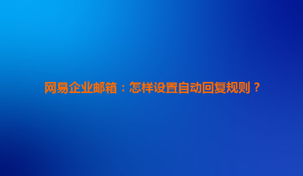 2025-06-28高效沟通新体验:网易企业邮箱自动回复功能详解 智能办公的必备利器 在商务往来日益频繁的数字化时代,及时响应成为专业形象的重要体现。网易企业邮箱的自动回复功能,正是为解决这一需求而生的智能工具。当您...