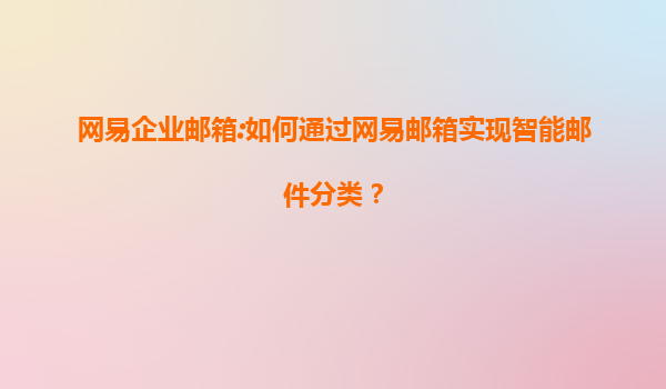 网易企业邮箱:智能化邮件管理,高效分类提升办公效率 在信息爆炸的时代,企业邮箱每天涌入大量邮件,如何快速识别重要信息成为职场痛点。网易企业邮箱凭借AI驱动的智能邮件分类系统,为企业用户提供了一站式解决...