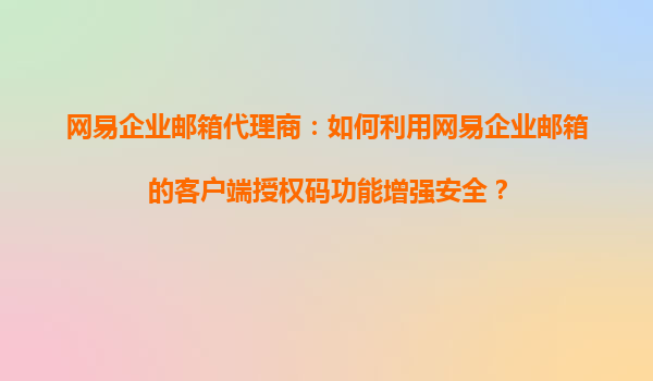 2025-11-04网易企业邮箱代理商:如何利用网易企业邮箱的客户端授权码功能增强安全? 一、网易企业邮箱的安全优势与代理商角色 网易企业邮箱作为国内领先的企业级邮件服务,其核心优势之一在于完善的安全防护体系...